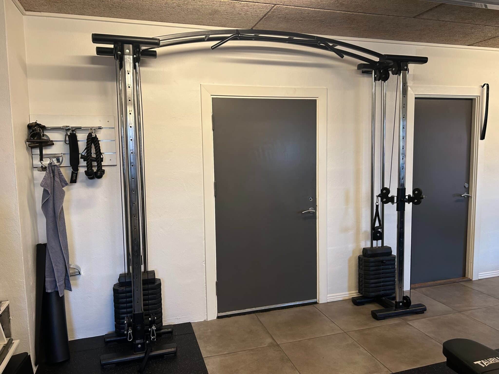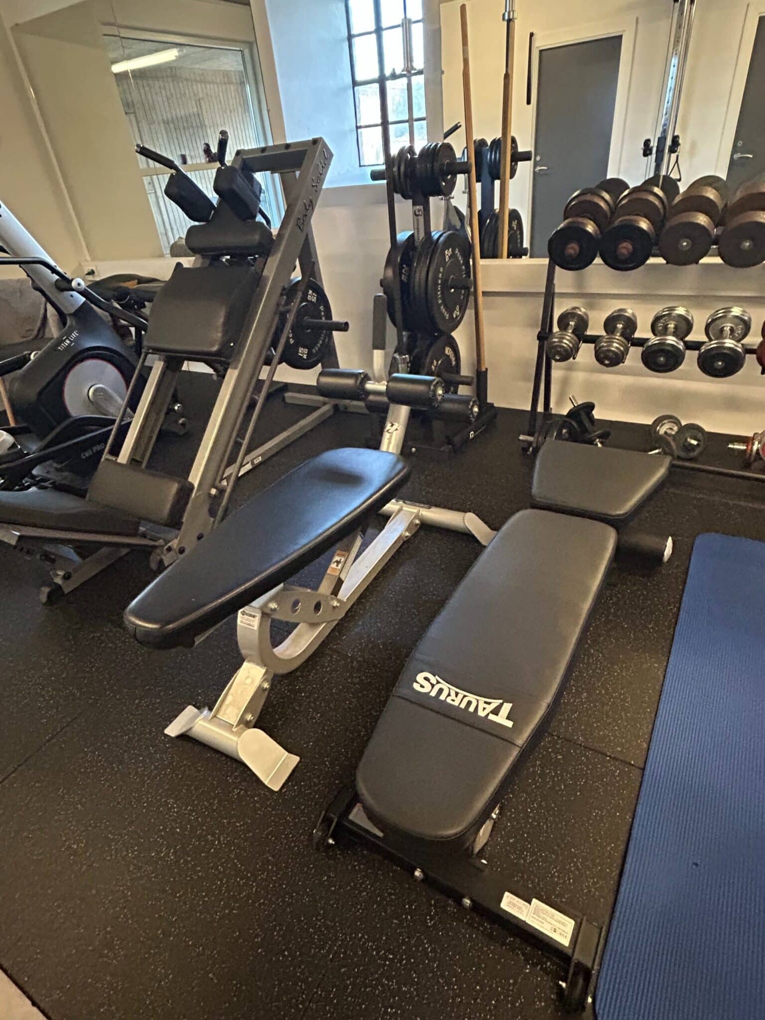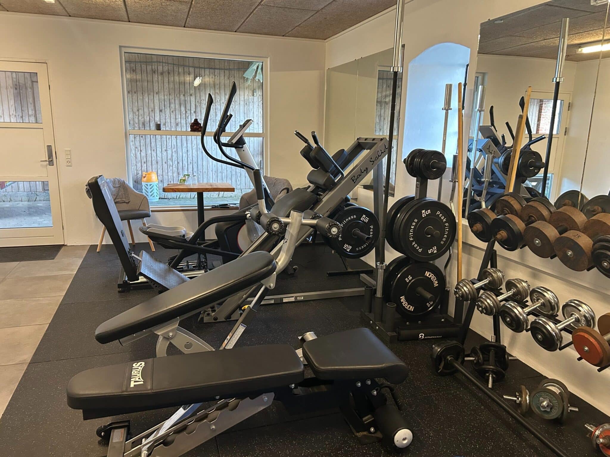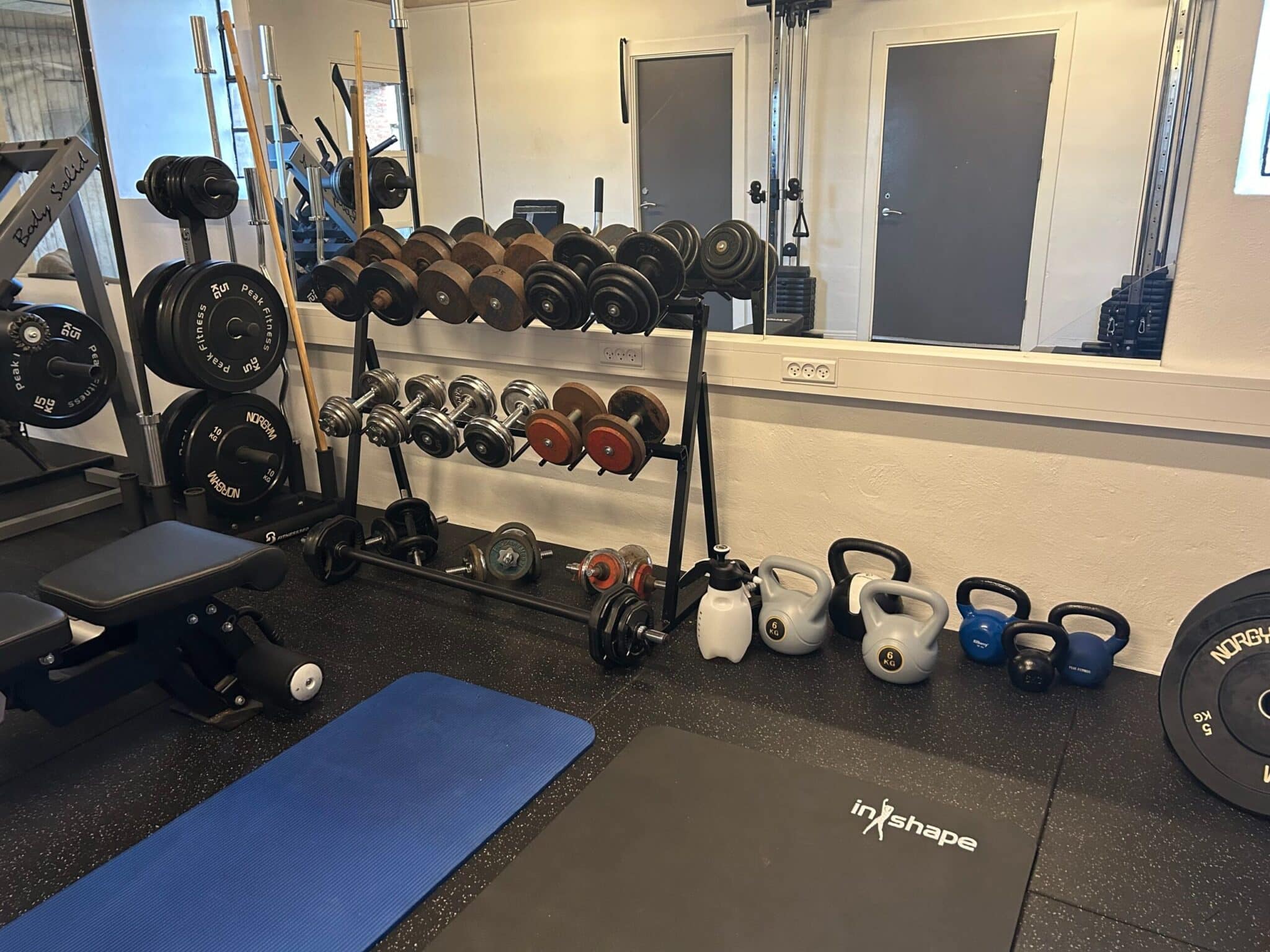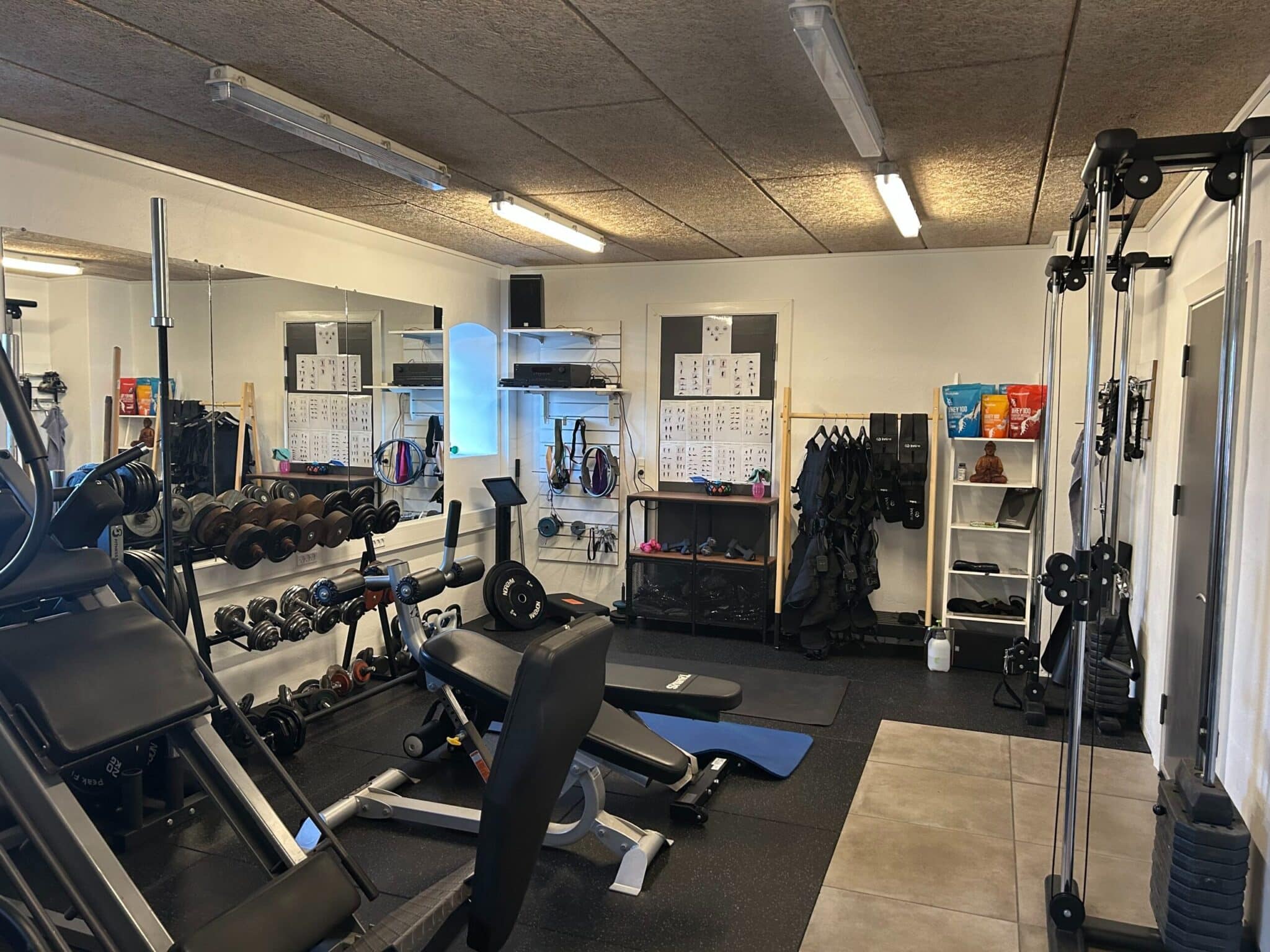 Mit træningsstudio er udstyret med alt, hvad du behøver for en effektiv træning, herunder håndvægte, stænger, kabeltårn og meget mere. Som personlig træner sammensætter jeg et komplet træningsprogram, der sikrer, at du får trænet hele kroppen.